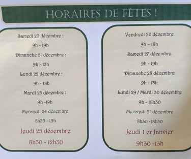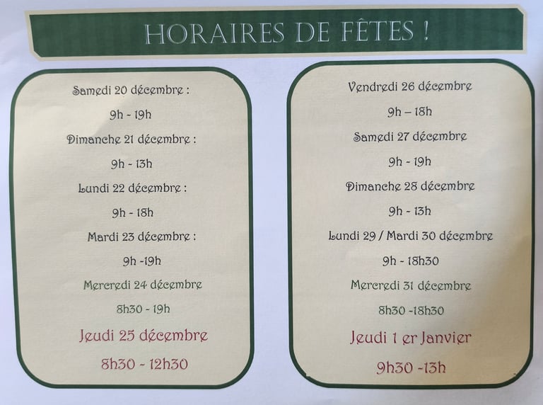 9h - 12h30 les jours fériés