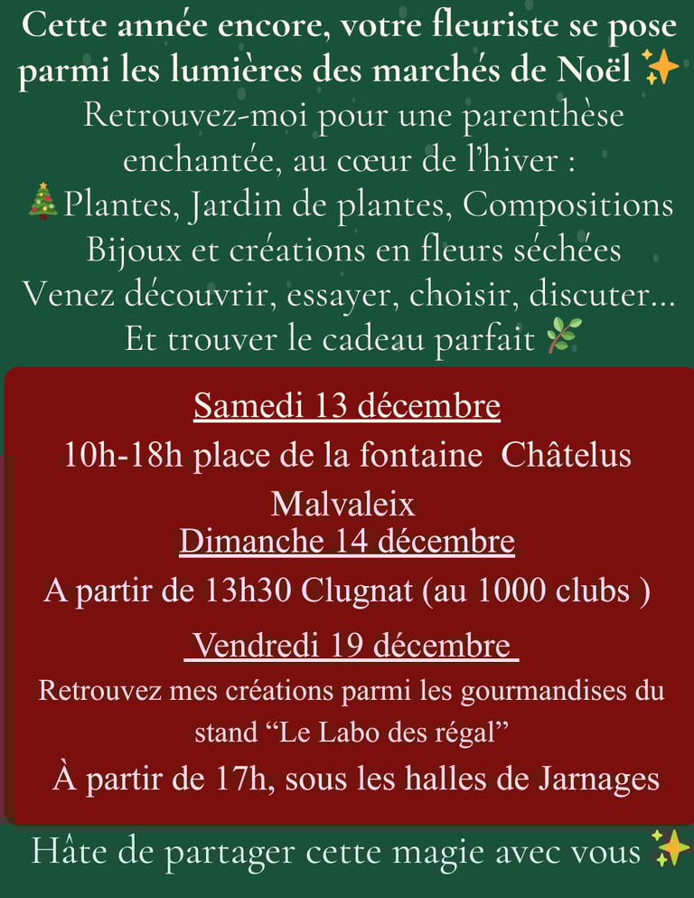 Toujours en quête de nouveauté et d'aventure, sa nature passionnée se reflète dans son travail, qu'elle aborde avec enthousiasme et détermination, que ce soit dans la réalisation de mariages, anniversaires, deuils, baptêmes etc..Que dans les bijoux et accessoires en fleurs séchées qu'elle réalise.