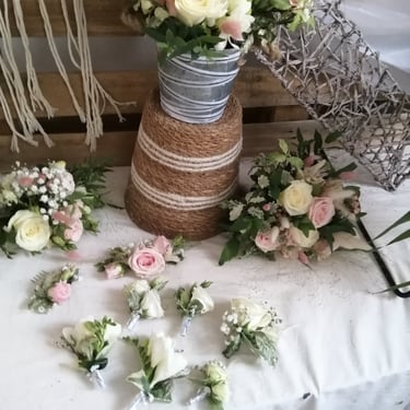 Le mariage est l'union parfaite entre l'amour, la passion et l'organisation. C'est un moment convivial et fleuri, une belle occasion de célébrer l'amour avec des fleurs. Des bouquets de mariée, des bouquets de demoiselle, des jeux de ruban, des boutonnières, des coiffures, des bijoux, des centres de table, des décorations de voiture, de salle, d'église, d' arches, tout est réalisable. C'est un moment où l'on peut laisser libre cours à sa créativité et exprimer son amour à travers des décorations florales magnifiques.